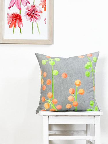 Throw Pillow: Cactus Flowers on Grey